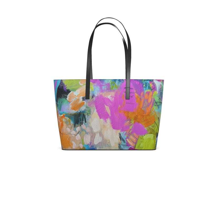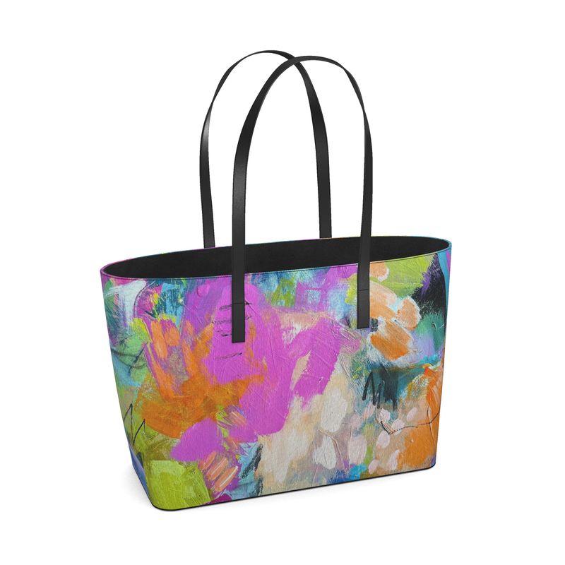 Nappa leather tote. Printed from original art by contemporary artist Carol Measom.