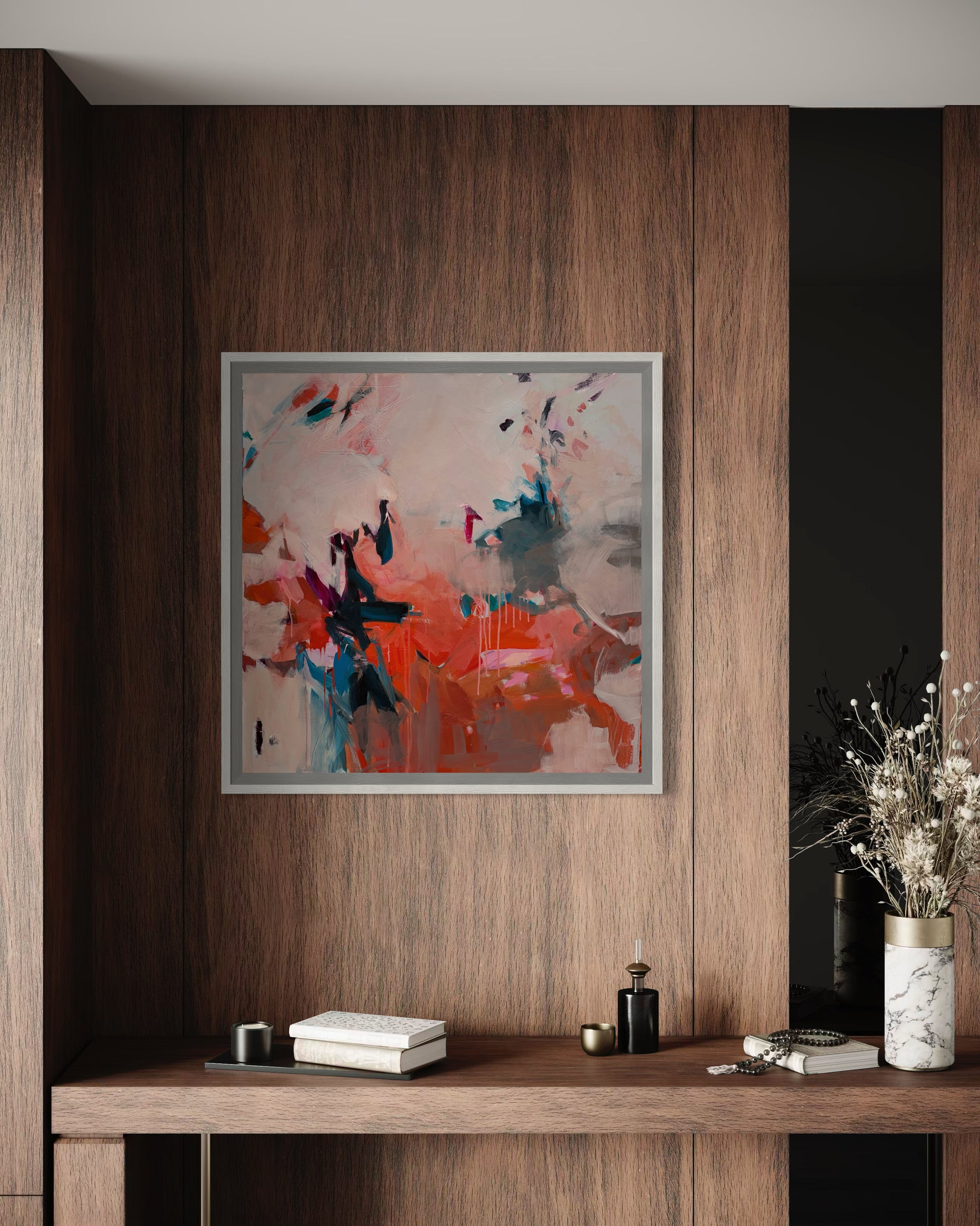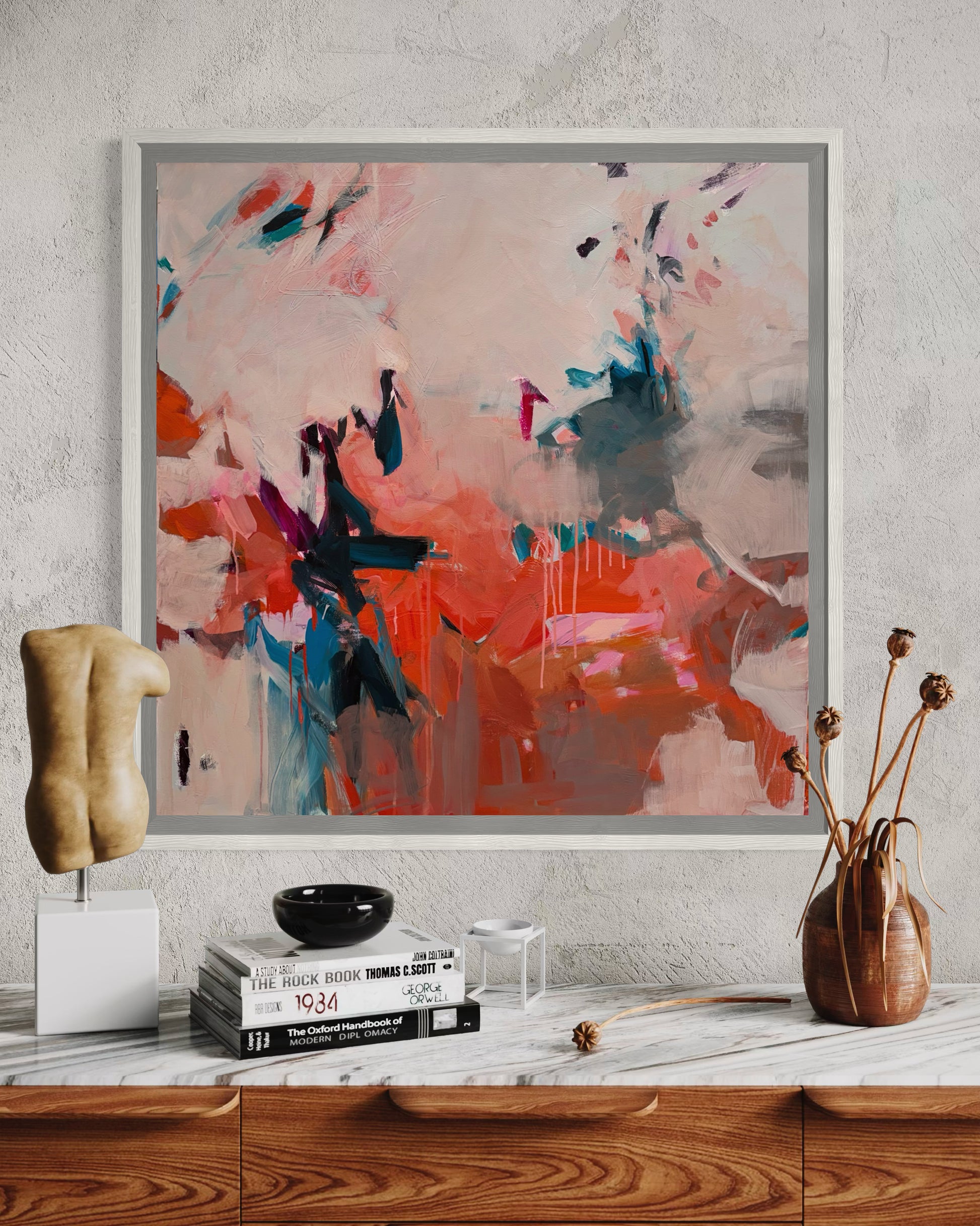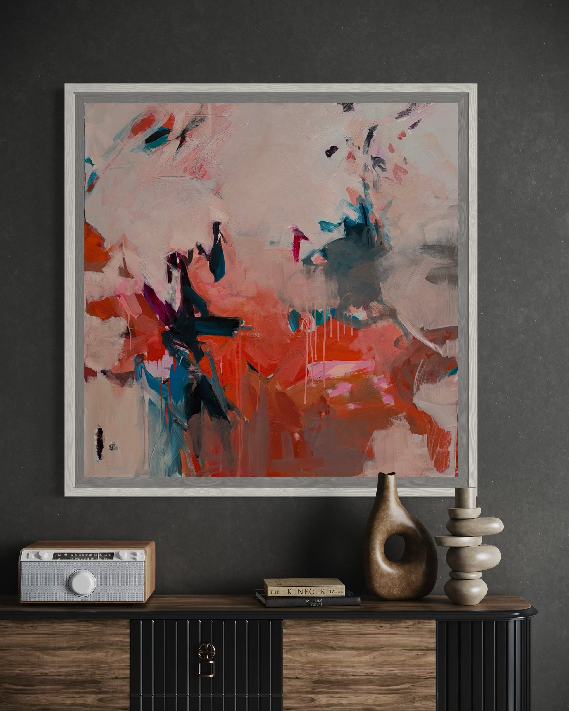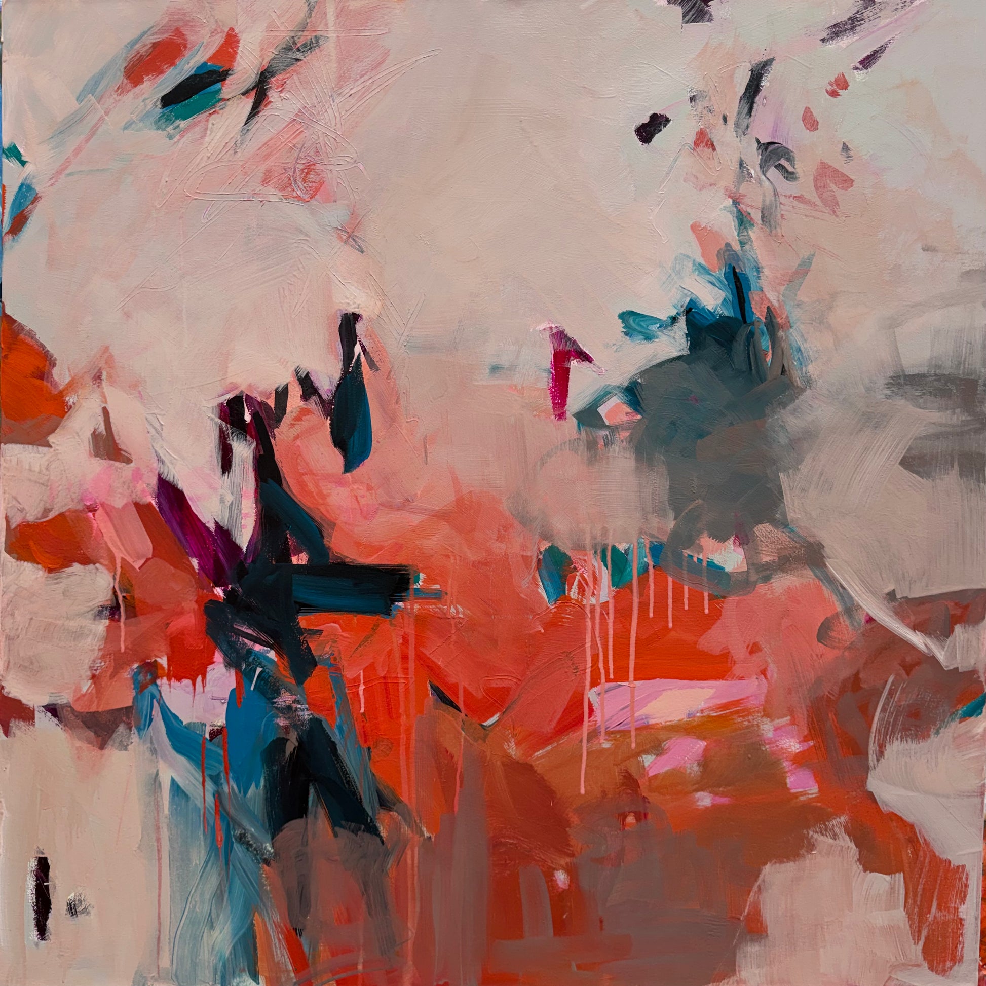 I started this abstract weeks ago and quickly became disheartened and frustrated with it. I left it sitting in my studio. After a trip to Florence and viewing the priceless works at the Uffizi Gallery i returned and finished this painting in minutes on my first day back in the studio. I was clearly inspired by the colors in Botticelli's "The Birth of Venus". Stepping away from my studio and traveling always inspires new work.