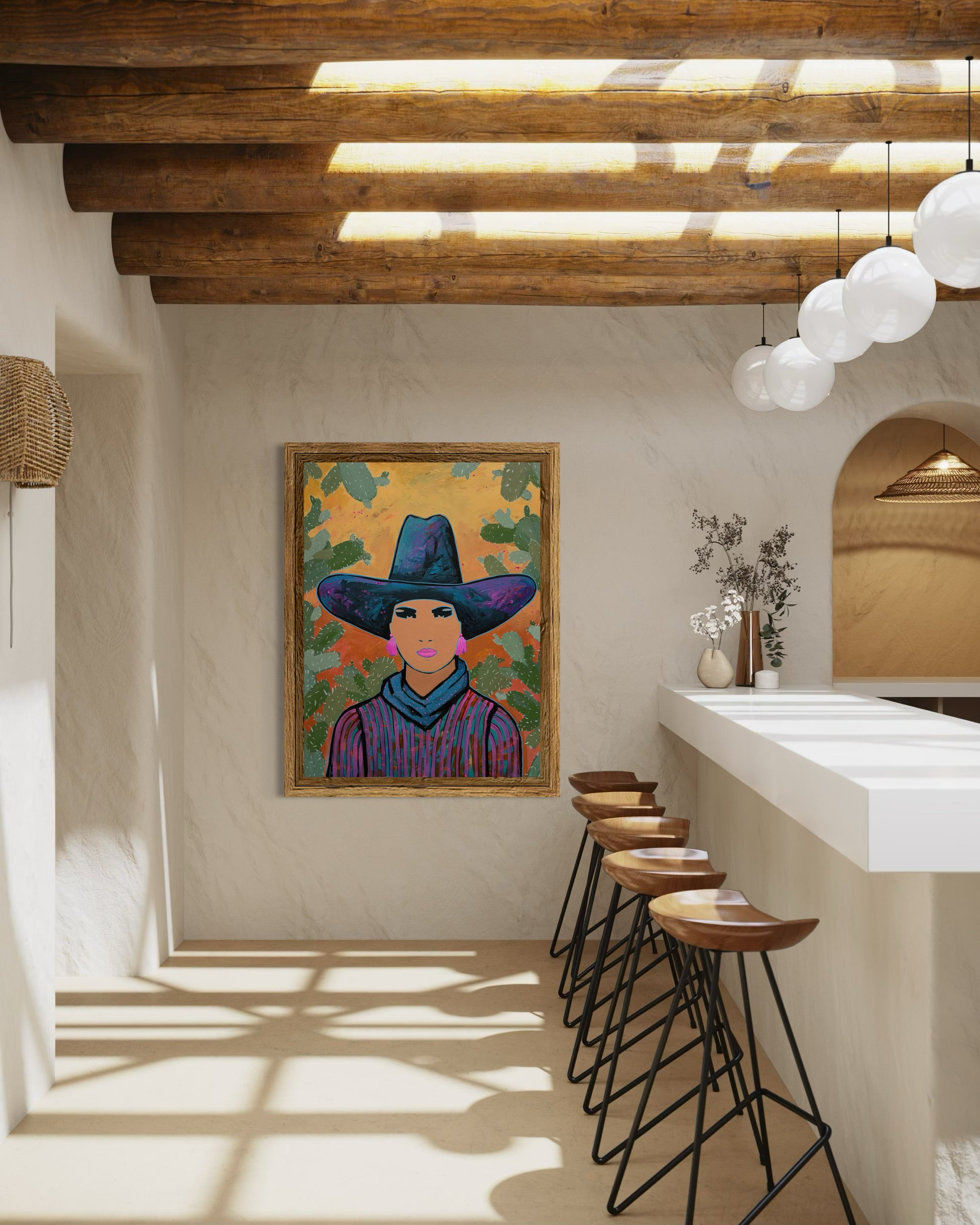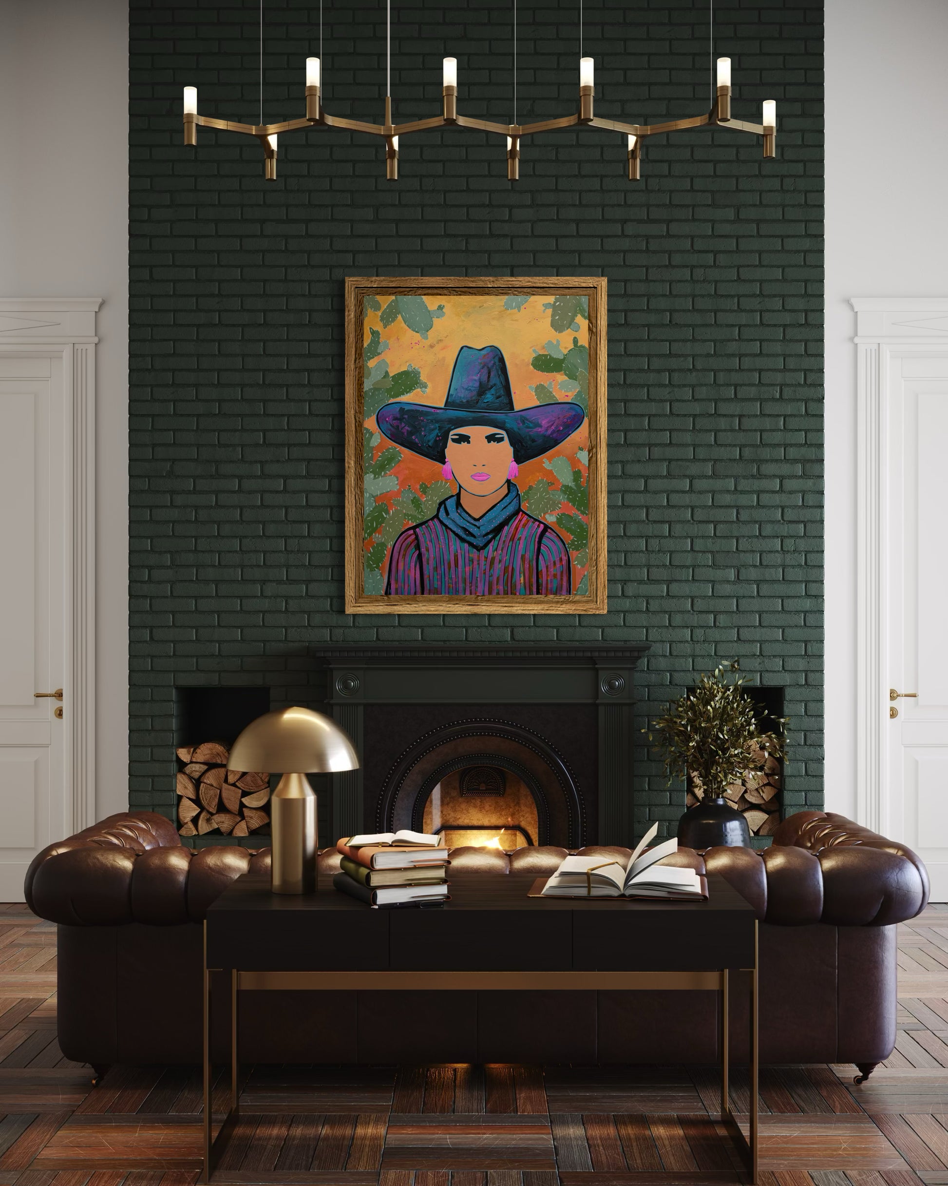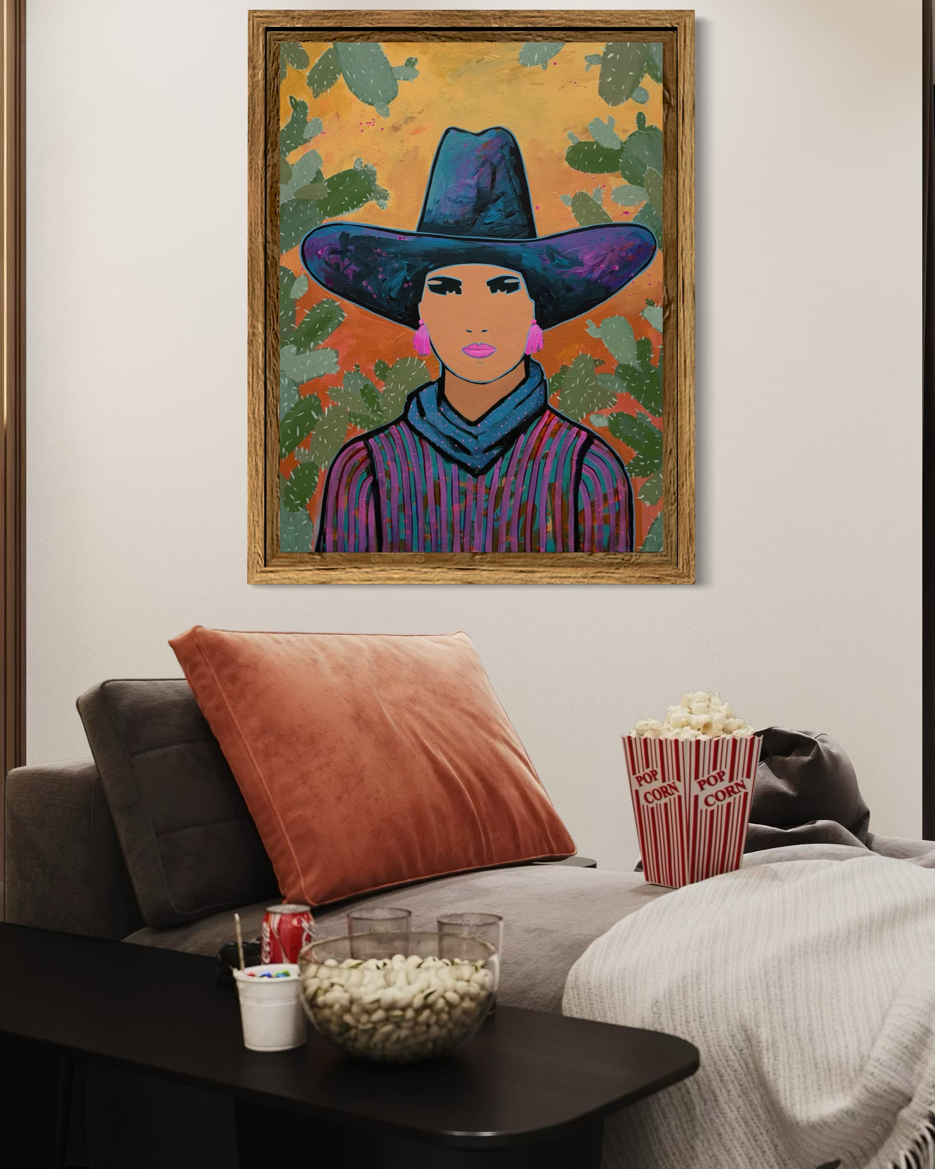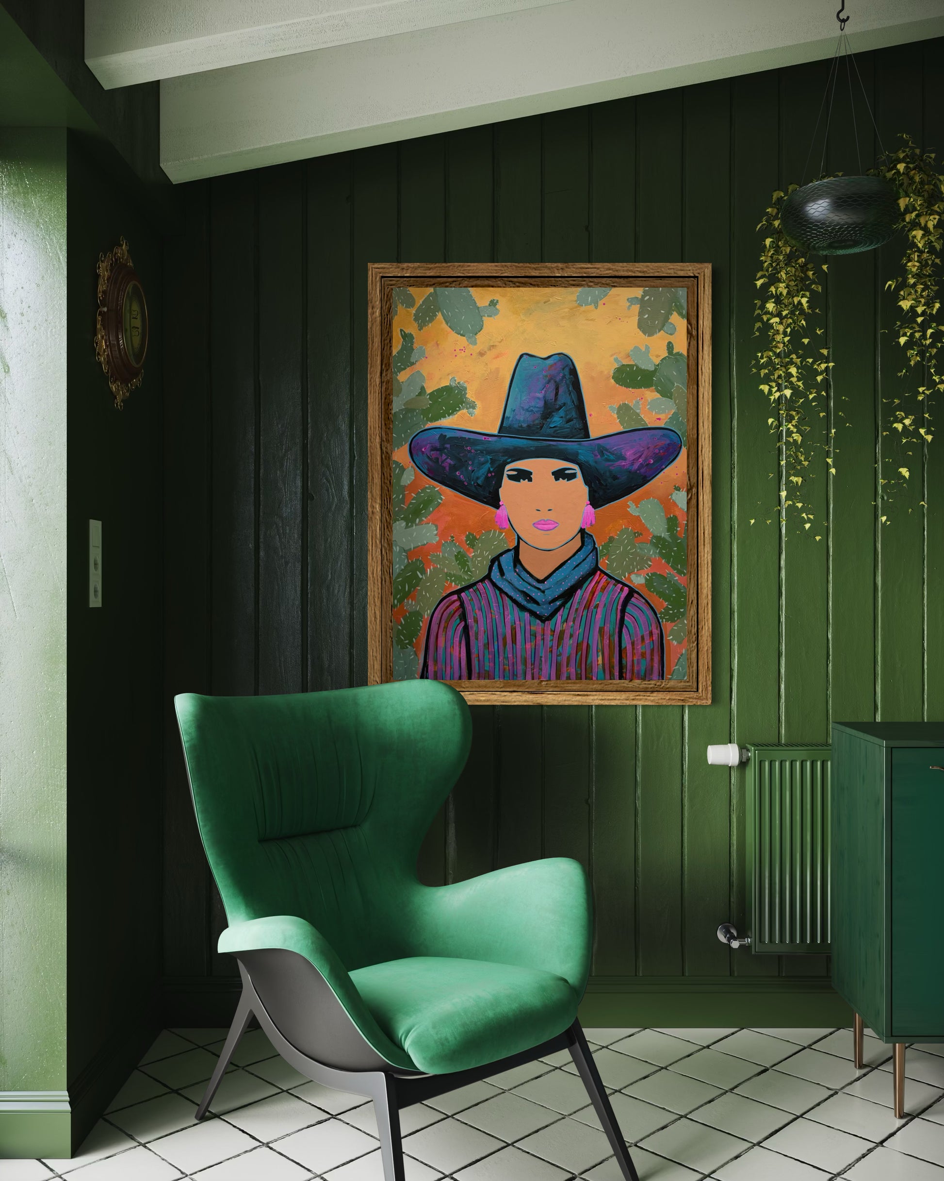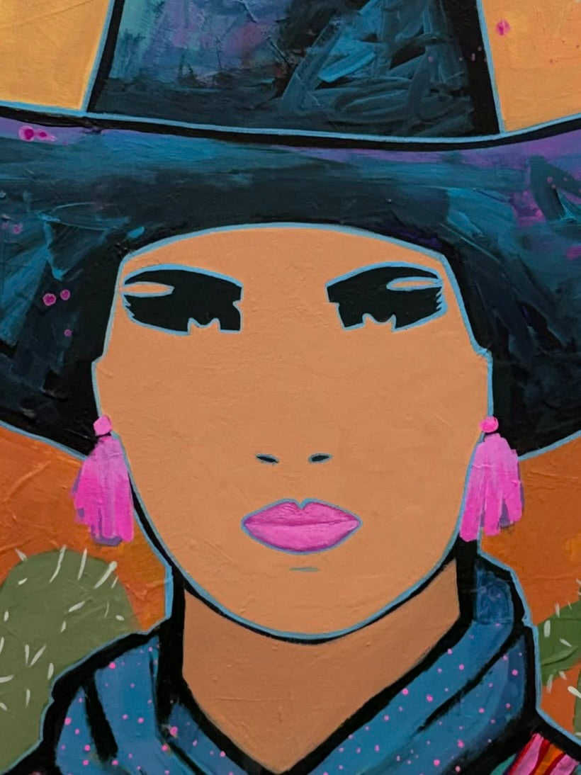 My cowgirls are part of my "American Girl" series. They are born of lots of layers of color which contributes to the beautiful variations of color and shape in their hats and clothes. This layering will leaves texture and some texture can generally be found on the face.