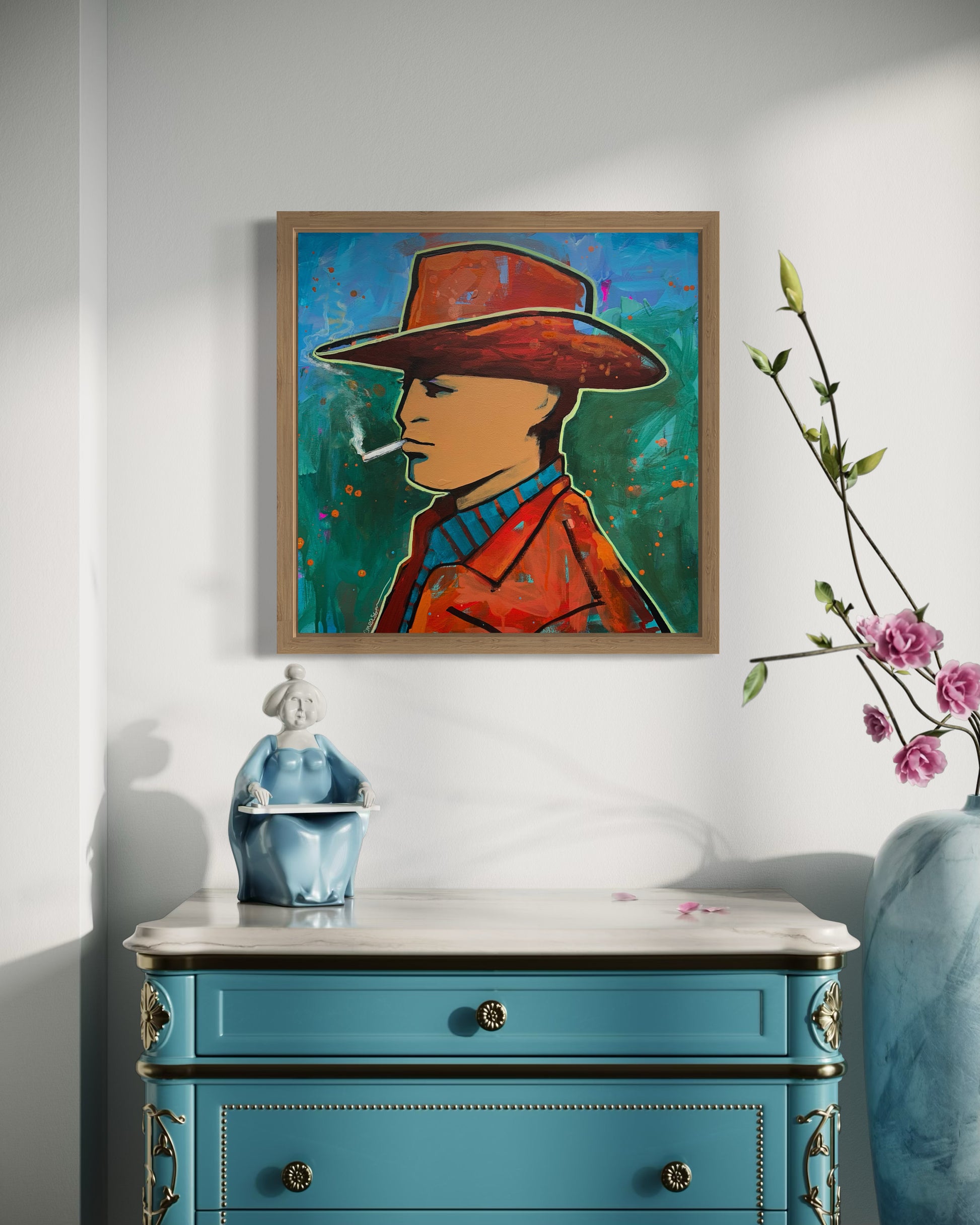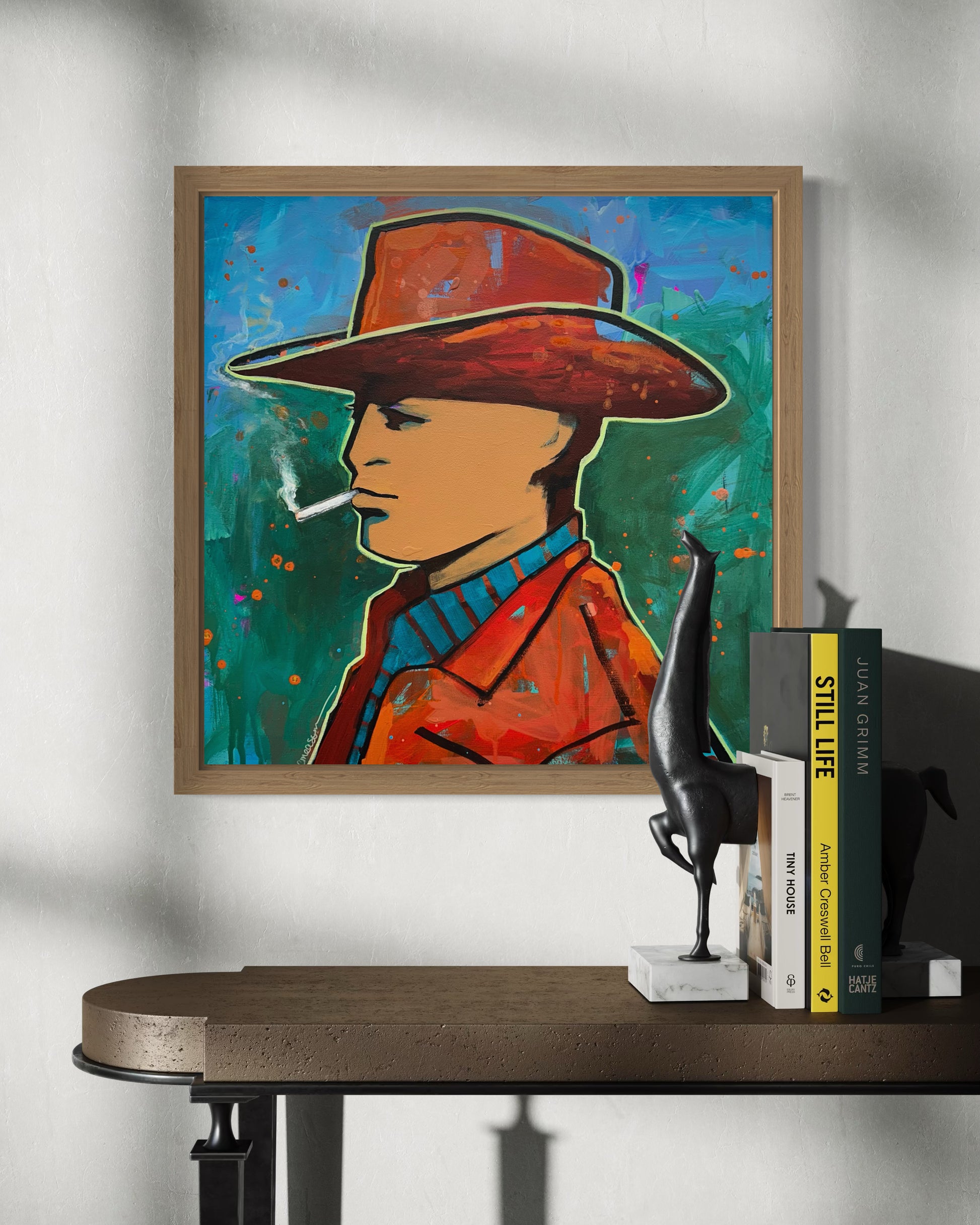 20" x 20", Acrylic on canvas. Includes oak floater frame.